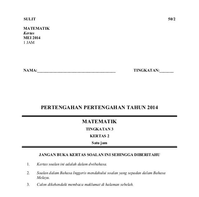 - Contoh Kertas Soalan Matematik Tingkatan 2 Kssm